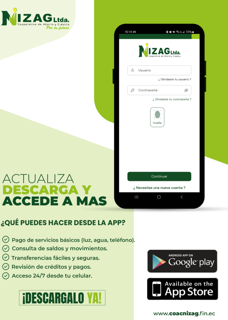 Mantén tu información al día y accede a todos los beneficios de Coop Nizag Ltda de forma rápida y segura.